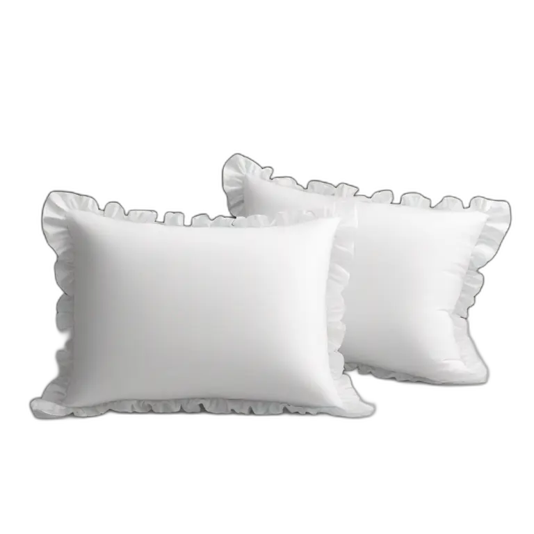 2 white pillows with ruffles