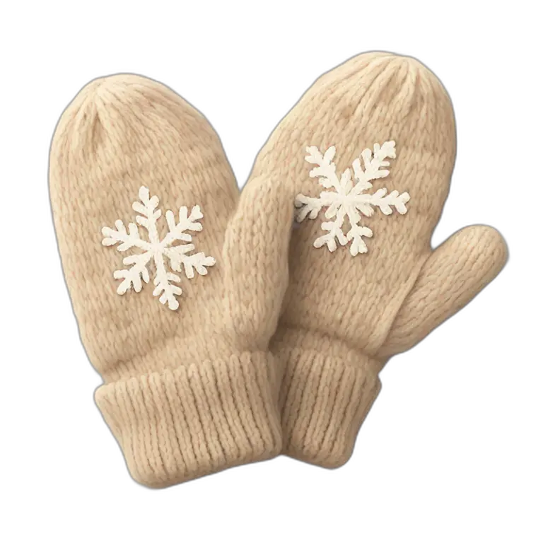 A pair of cozy knitted beige mittens with a snowflake design emoji | AI Emoji Maker #KN2QPUynn1KD