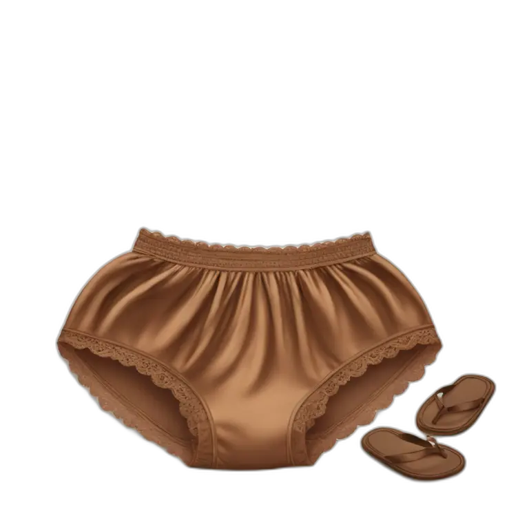 A romantic brown set of underwear lies on a silk bed emoji | AI Emoji Maker #oud1Wtyke6Dq
