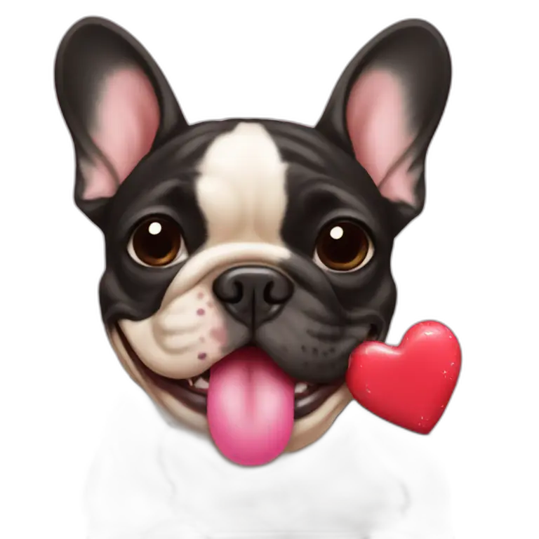 Black and tan colored French bulldog holding Valentine in mouth emoji | AI Emoji Maker #Sh1pbq4vlQYg