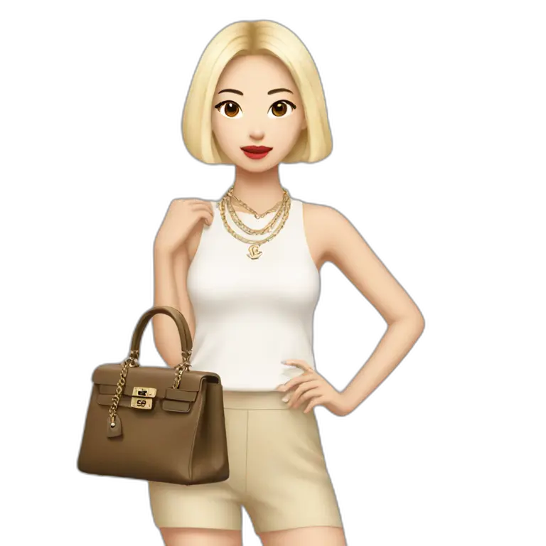 Blonde Chanel Asian Girl with Birkin bag and Chanel necklace emoji | AI Emoji Maker #8ENFaAYdoktJ