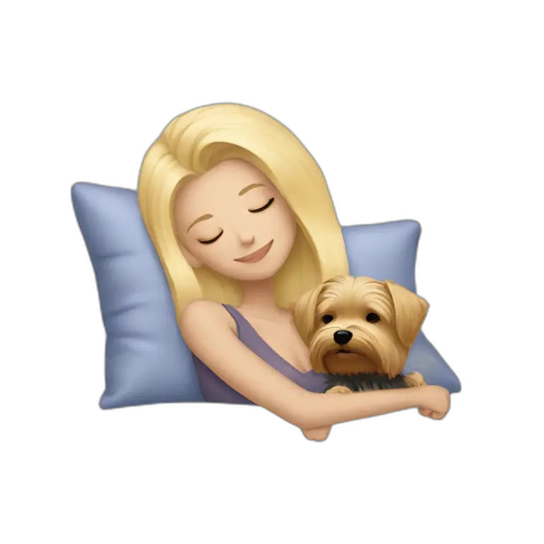 Blonde woman sleeping with her Yorkie emoji | AI Emoji Maker #2xqFiHLcR6UM
