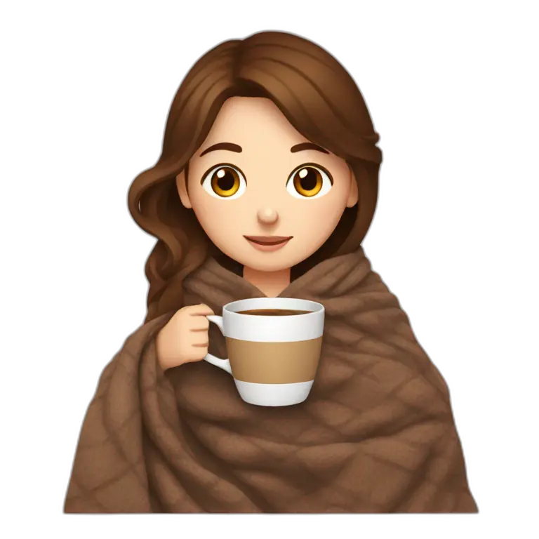 Brown hair Girl drinking coffee, with a cozy blanket emoji | AI Emoji Maker #BYCnj6k931J6