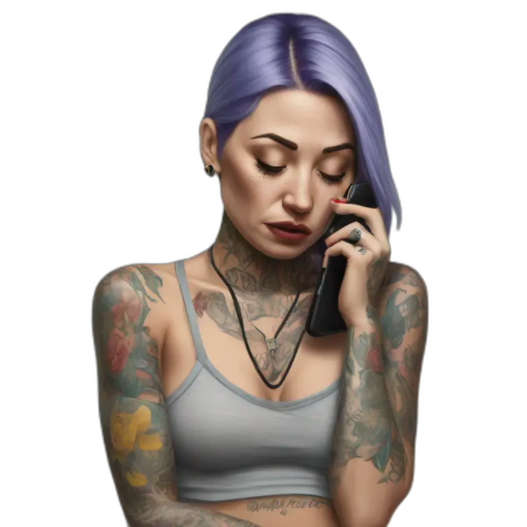Hyper Realistic Beautiful tattooed woman crying holding a phone emoji | AI Emoji Maker #2HVFV4eCawPa