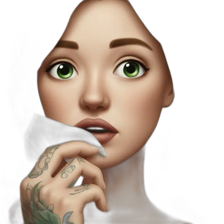 Hyper Realistic Beautiful tattooed woman crying holding a tissue emoji | AI Emoji Maker #qhhWq8zLK6Qt