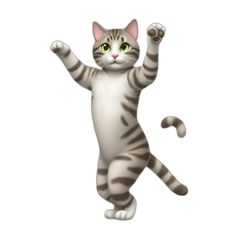 Light grey brown tabby cat dancing standing with green eyes emoji | AI Emoji Maker #pTKenIAo3lRq