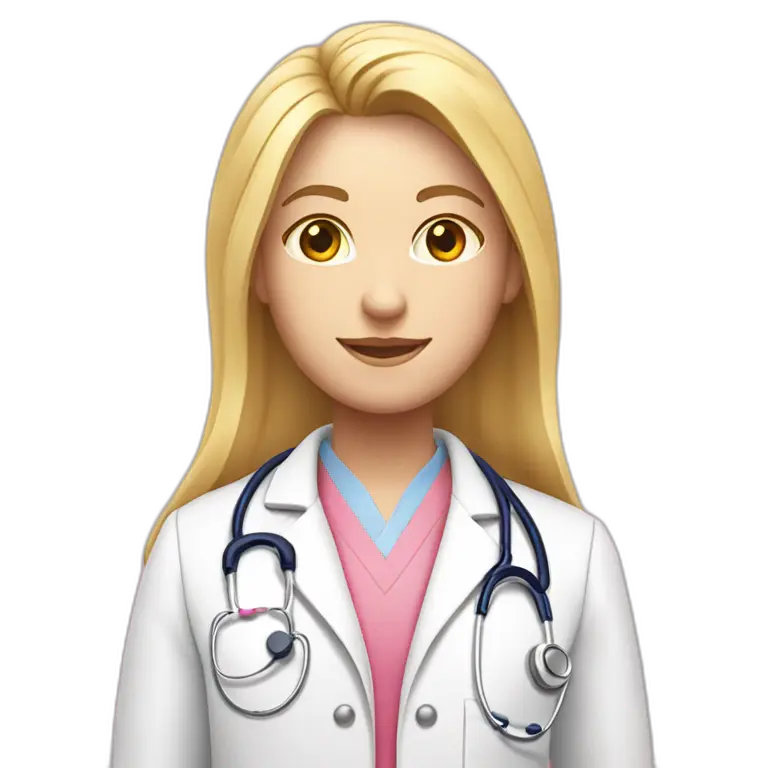 Long blonde hair doctor in pink undershirt white coat over pink stethoscope emoji | AI Emoji Maker #7Mw20rW2oR6o