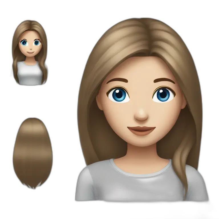 Long waist length brunette straight hair girl, blue eyes, emoji | AI Emoji Maker #q7l3LUPEPJ3v