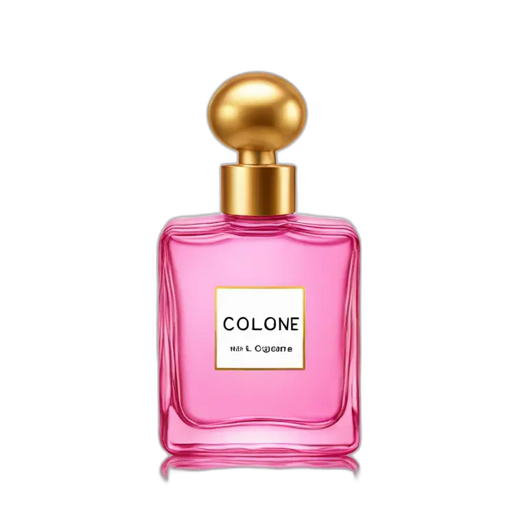Square pink perfume bottle with white label that says cologne in gold emoji | AI Emoji Maker #IQWjRYCx2gia