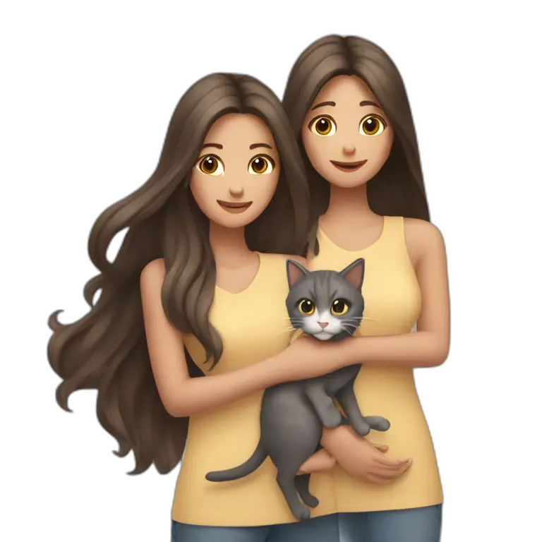 Two long hair brunette girls and two cats in their hands emoji | AI Emoji Maker #yc6WftlPwycI