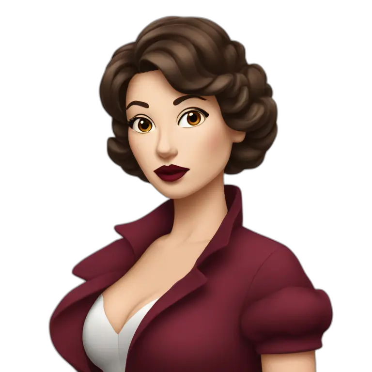 White brunette femme fatale dressed in burgundy putting lipgloss on her lips emoji | AI Emoji Maker #GDuCqcRyStlm