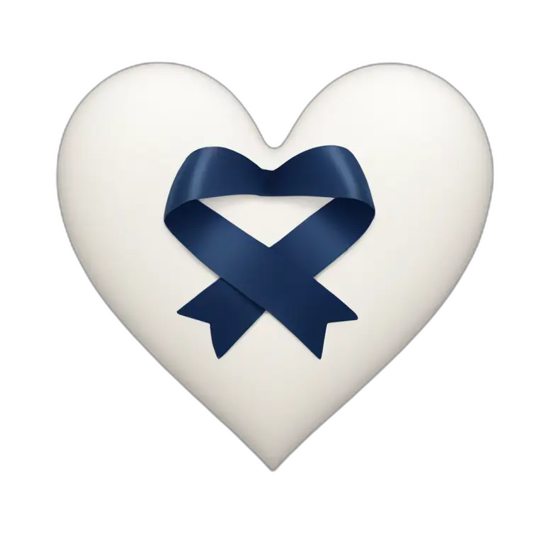 White heart with a navy blue ribbon tied around it