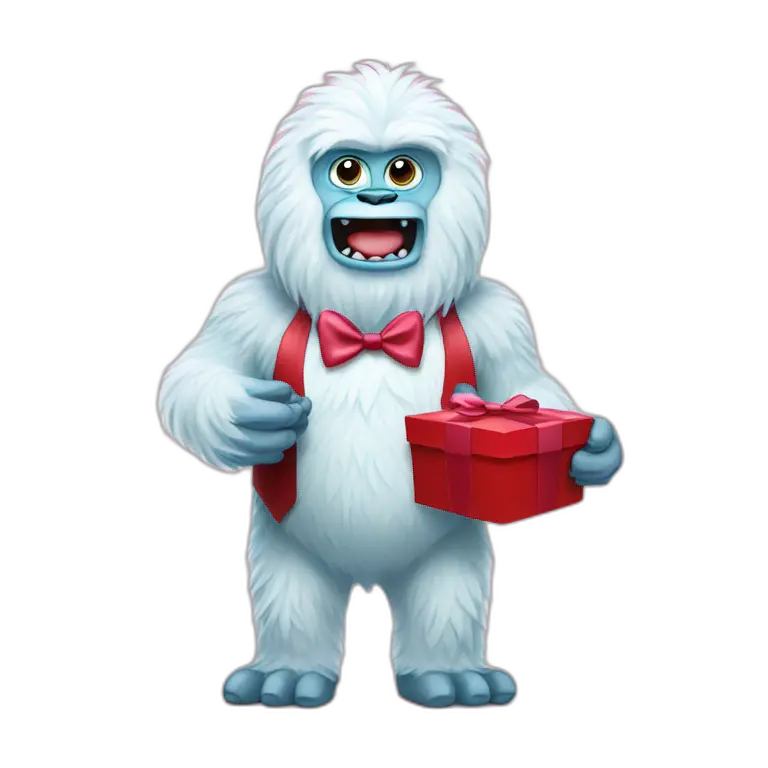 a valentine yeti with a bowtie holding box of chocolate emoji | AI Emoji Maker #Cj1duEnXrw9z