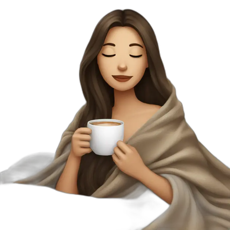 girl brunette inside a blanket sipping coffee eyes closed emoji | AI Emoji Maker #Fpg2i6dW76hC