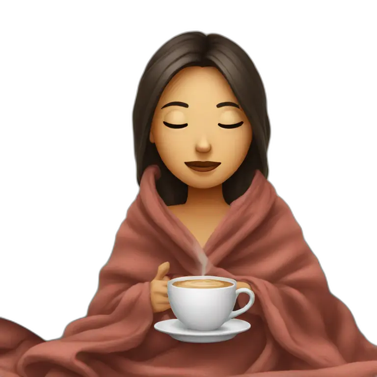 girl inside a blanket sipping coffee eyes closed emoji | AI Emoji Maker #Kh3J5ncpcWCO