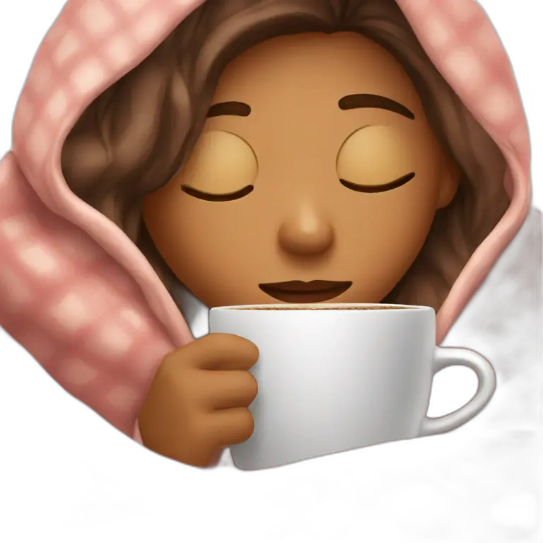 girl inside a blanket sipping coffee eyes closed emoji | AI Emoji Maker #Sm4oHLbNGrTP