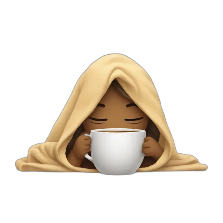 girl inside a blanket sipping coffee eyes closed emoji | AI Emoji Maker #ybiVBURfUcgB