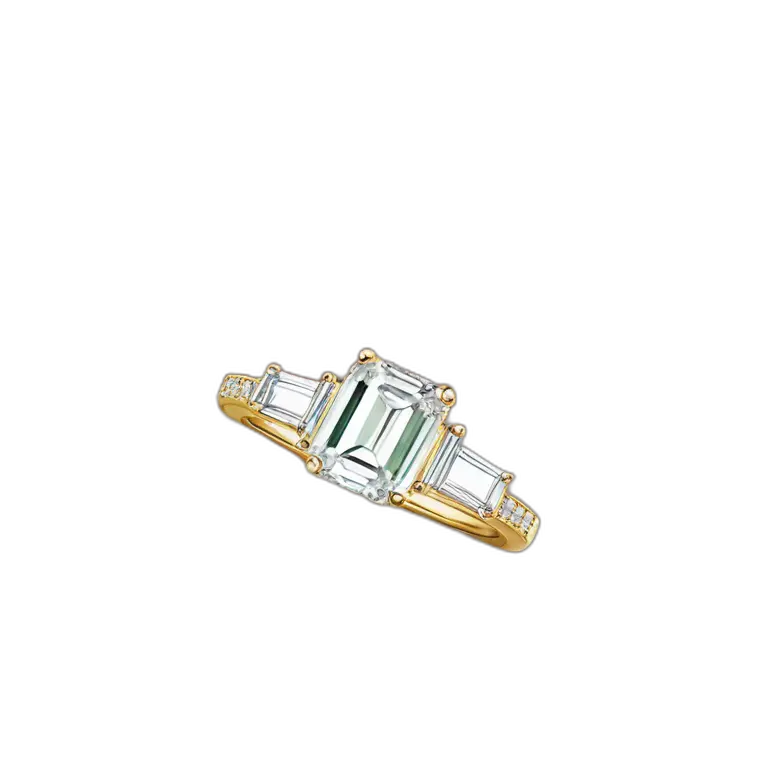 gold emerald cut engagement ring with side stones and thin band emoji | AI Emoji Maker #Cquklk6c6jy8