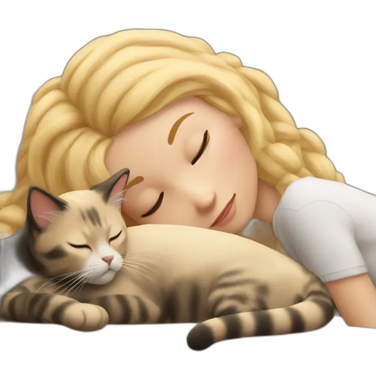 sleeping girl blonde hair laying next to Calico cat emoji | AI Emoji Maker #8o1WLHHz5yKj